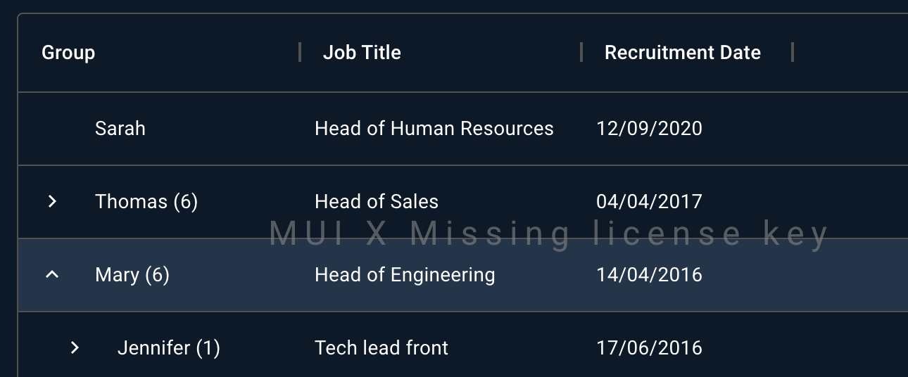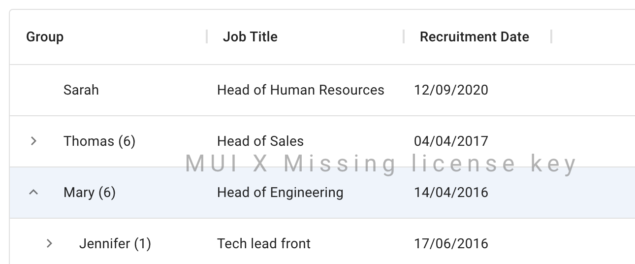 MUI X Premium unlocks the most advanced features of the Data Grid, including row grouping and Excel exporting, on top of everything else offered in the Pro plan.